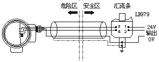 ·傳感器與安全柵本安端之間的連接電纜為三芯屏蔽電纜(電纜必須有絕緣護套)芯線截面0.5mm2。其屏蔽層在安全場所單端接地,其電纜布線盡可能排除電磁干擾的影響并使電纜分布參數(shù)控制在0.05F之內(nèi);