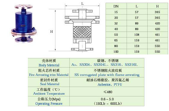 詳細說明: ① 阻火器適用于儲存閃點低于28℃的甲類油品和閃點低于28℃的乙類油品,也適用于儲存物料以氮氣封頂?shù)墓绊敼奚希[石阻火器與網(wǎng)型阻火器原理同上,用在管道上。 ②與呼吸閥、呼吸人孔配套使用,也可單獨使用。