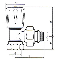 黃銅角式溫控閥/Brass elbow valve with temperature control 主要尺寸(Dimensions):